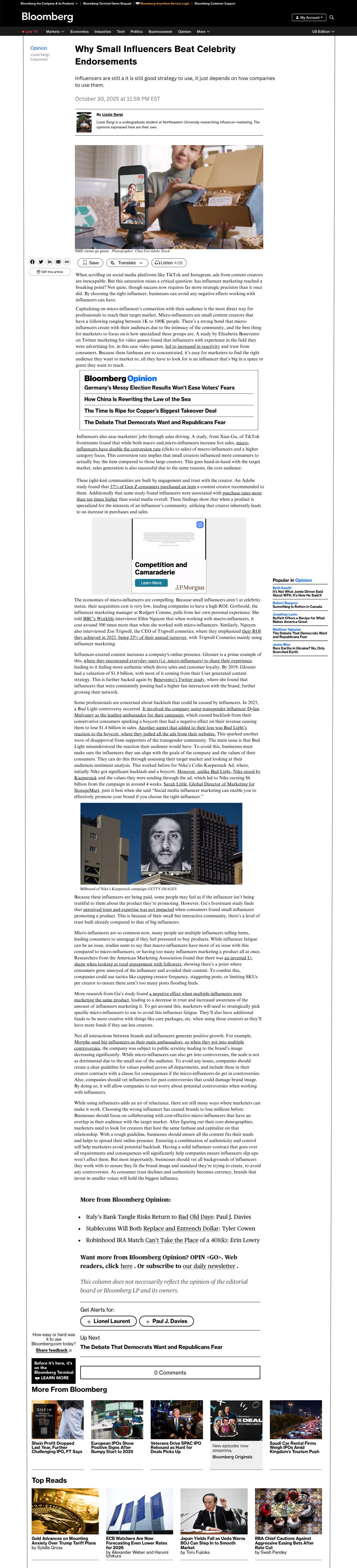 I authored a mock Bloomberg opinion article examining the nuances of current influencer marketing. The piece argues the continued effectiveness of content creators and the strategic changes shaping how brands collaborate with content creators.